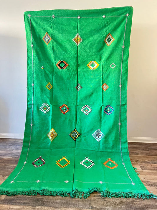 handmade authentic moroccan/ green Cactus Silk Rug -frhana chwiya