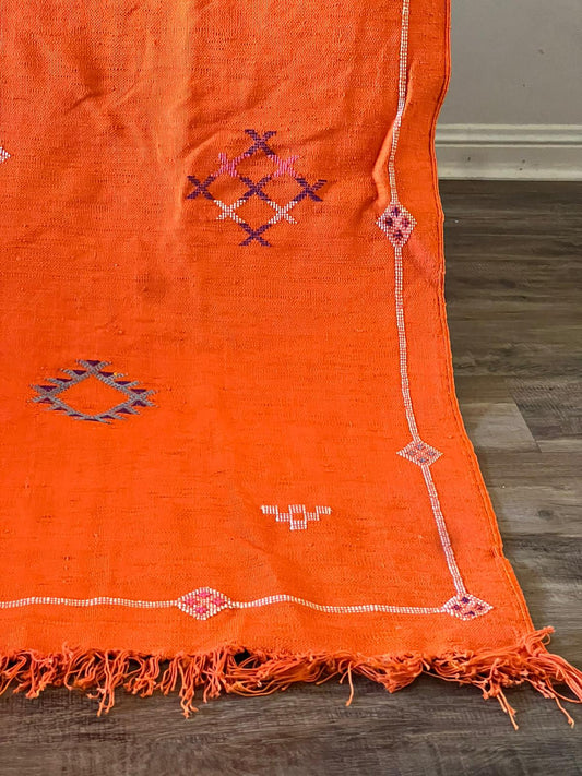 handmade authentic moroccan/ orange Cactus Silk Rug