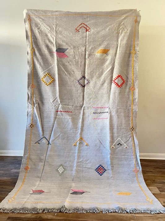 handmade authentic moroccan/ grey Cactus Silk Rug -momkin chriha