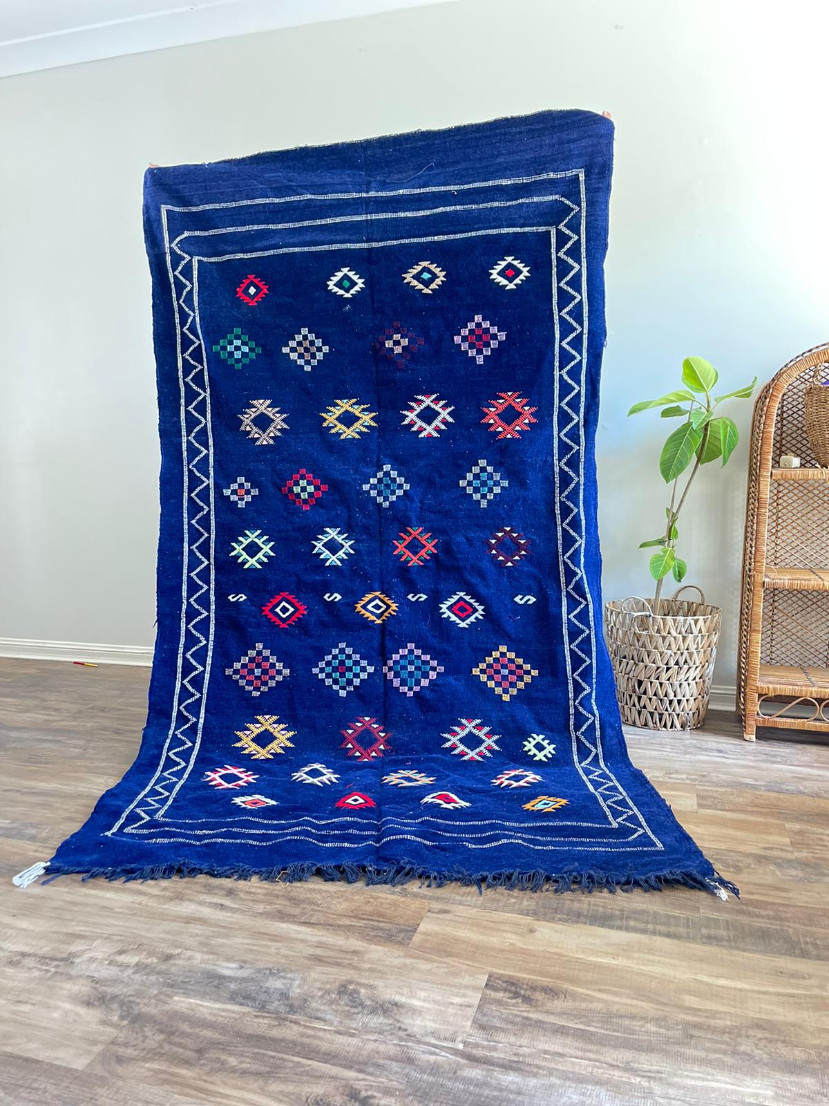 this is a Moroccan wonderful wool kilim rug is handmade by Berber women, the techniques are passed from generation to generation, each rug is unique and is totally imagination of the Weaver product.